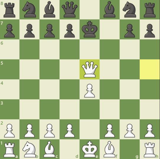 5... Qd4!(퀸이 e4 폰과 e5 나이트를 동시에 포크)